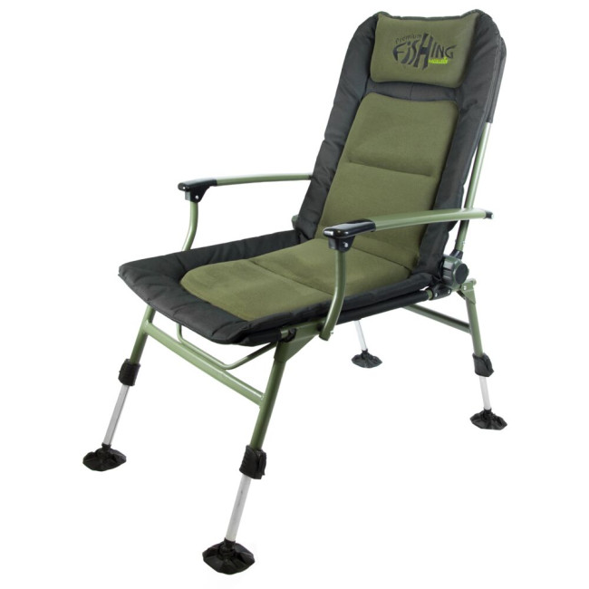 - Регулировка наклона спинки: Несколько уровней фиксации позволяют настроить кресло под себя — от строго вертикального «рабочего» положения для активного клёва до полулежачего режима для отдыха.